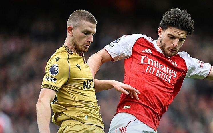 为了能够延续强势的发挥,阿尔特塔此役在主场没有丝毫保留,沿用了球队最熟悉的433阵型,首发门将拉亚,卡拉菲奥里、加布里埃尔、萨利巴和廷伯构筑后防,赖斯、苏维门迪和战旧主的埃泽坐镇中场,特罗萨德、约克雷斯和萨卡组成了进攻三叉戟。
